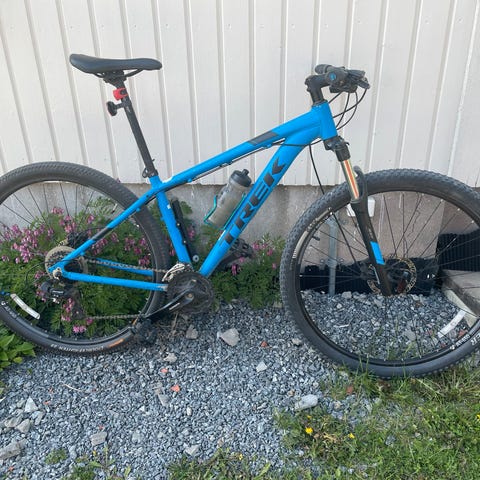 Trek 3700 mountainbike i hvit farge med 26 tommers hjul. Sykkelen har ramme i aluminium og er designet for herre. Utstyrt med girskiftere og dekk tilpasset terrengsykling.