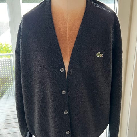 Selger en original Izod Lacoste cardigan i klassisk rød farge.