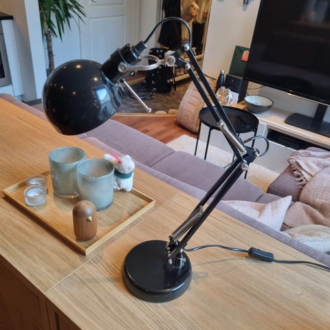 Selger min IKEA Hektar bordlampe med trådløs lader grunnet flytting. Meget pent brukt og uten bruksmerker. Den har også USB A inngang for lading på siden. Lyspære følger ikke med.