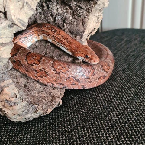 Vi vurderer å finne et nytt hjem til vår Abbott’s Okeetee kornsnok-hunn, klekt år 2020.