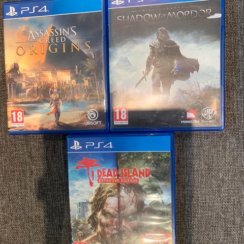 Selger fem PlayStation 4-spill i god stand, komplett med cover og disk – alle testet og fungerer som de skal.
