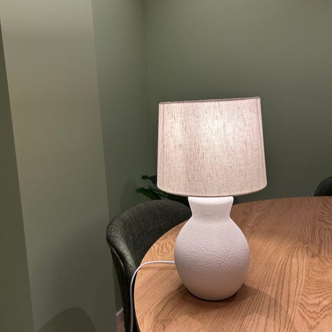 Selger en bordlampe, merke EGLO, er kjøpt på BAUHAUS.