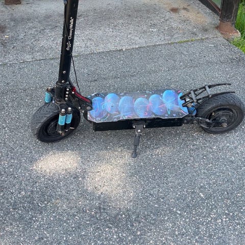 63v batteri, makslading er 71,4v som gjør at akselerasjonen er syk med 1600w motor.