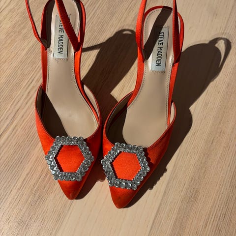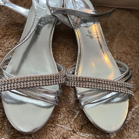Veldig fine partysko. Er bekveme. Pyntet med strasssteiner, brukt bare en gang på brlyup