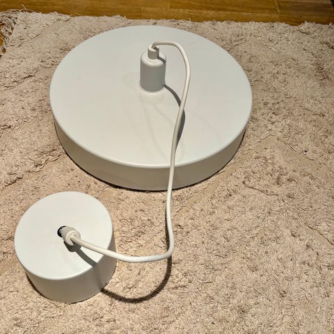 Umage Cassini Medium Ø40 Hvit Takpendel i perfekt stand. Flott pendel som lyser opp både et bord under og gir et stemningsfullt lys til hele rommet. Følger ekstra kabel for bruk i veggplugger.