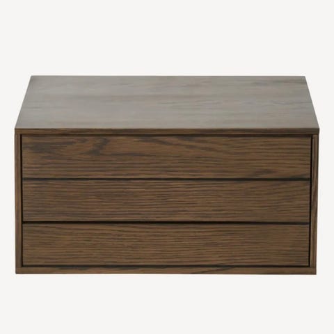 Nattbordet har to skuffer og ett rom bak glassfront – perfekt kombinasjon av moderne design og funksjonalitet.