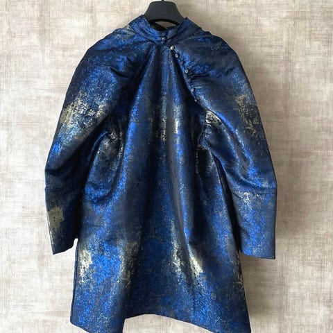 Eksklusiv kjole fra HOOR by R.C.Elegant blå mønsterkjole med glans og steinpynt