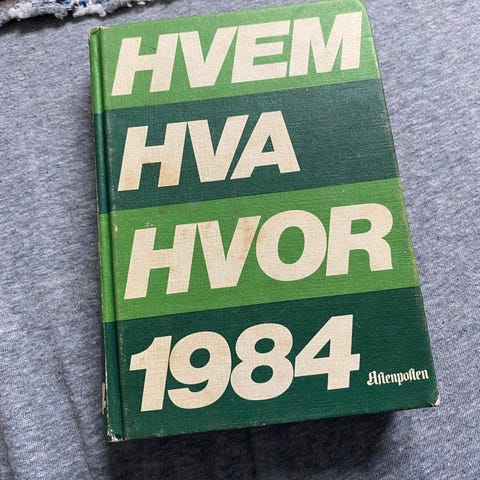 Bok på norsk om det som hendte i 1984-85. Valgkamp med Kåre og Gro, Bobbysocks vant Eurovision, Treholt, Reagan, Roskilde, Indira Gandhi og mye mer. Selges for 180 kr. Sendes mot tillegg for porto. Forhåndsbetaling med vipps. Bruker ikke Fiks ferdig.