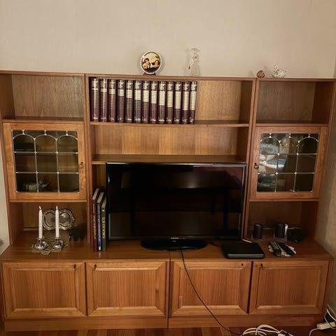 Veggseksjon brun eik finer. Må hentes