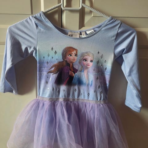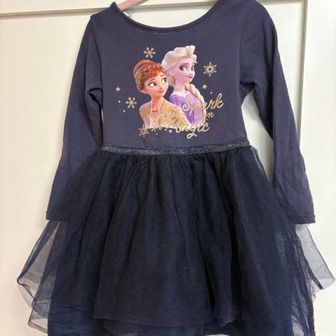 Pent brukt kjole med Elsa. Passer fint med både strømpebukse eller tights. Kjøpt ny av oss og brukt til ett barn.