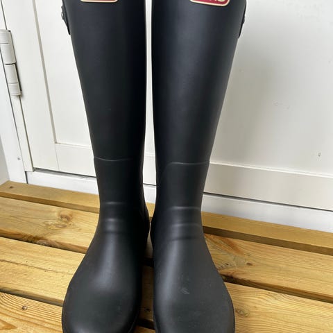 Høye regnstøvler, lett fôret med fleece, svart, 38 (vanlig i størrelse). Ligner veldig på regnstøvler fra Hunter.
