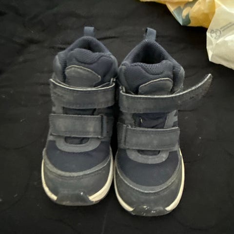 Skooty tex Superfit barnesko i størrelse 24. Skoene har en blå overflate med oransje detaljer og borrelåsfester for enkel på- og avkledning. Sålen er laget for godt grep og slitestyrke.