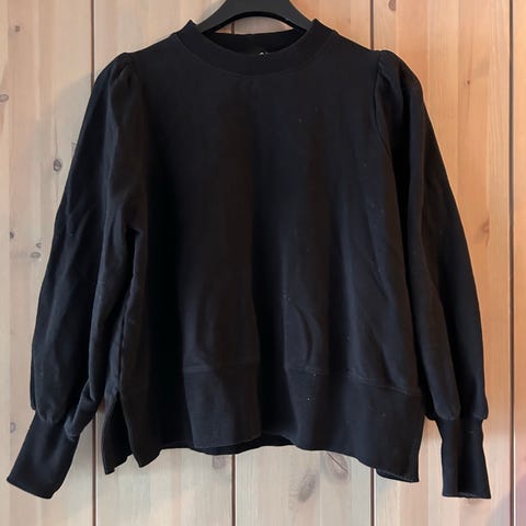 Svart crewneck genser fra Creative Collective med puffermer. Den er litt kort og noe liten i størrelsen, passer fint en S/M også, men mulig den da blir noe oversized.
