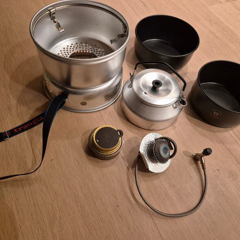Trangia 25-4UL med gassbrenner. Esken er åpnet, men produkter er aldri brukt.