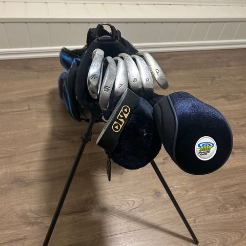golf, golfsett, golfkøller, jernsett, driver, wood, putter, sand wedge, pitching wedge, golfbag, bag, golfutstyr, komplett sett, nybegynner, viderekommen, golfkølle, golfbag med stativ, bærebag, golfklubber, dame golf, herre golf, golf startsett, golfpakke