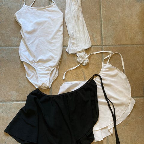 Den minste ballettkjolen er str 4-6 år. De andre er litt større (lapp fjernet, så usikker på nøyaktig str).