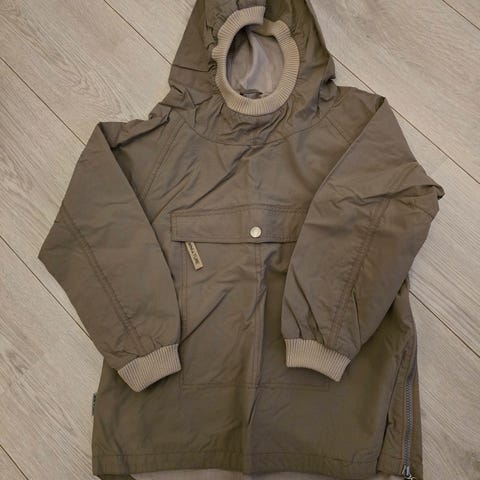 Jakken har hette, frontlommer med klaffer, justerbar midje med knapper og reflekser for økt synlighet. Materialet er egnet for utendørs bruk.