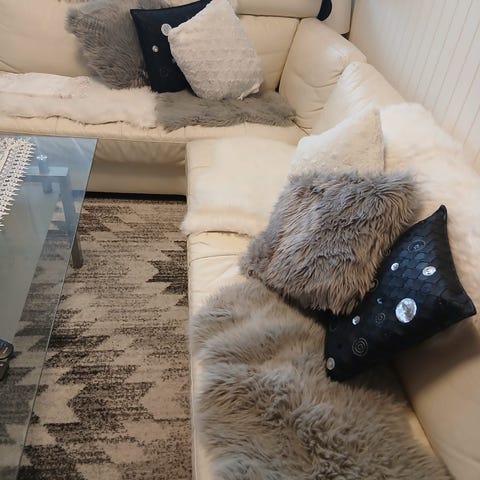 Stolene et trukket i skinn. Sitteputene er fylt med dun.