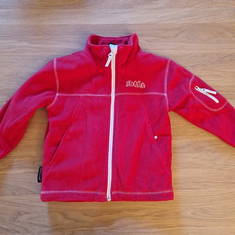 Skogstad fleecejakke str 4 år. God i str, kan reguleres nede med snøre. Litt varmere enn de kalde tynne fleecejakkene.