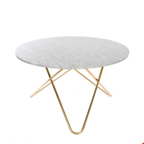 Selger bordplaten til spisebordet mitt fra Ox denmarq. Platen er i hvit marmor og utrolig flott tilstand da den er blitt behandlet veldig pent. Platen har ingen skade. Grunnet at jeg selger kun platen er at dessverre ved et uhell heller bordet nedover. Så bordbeinet er blitt bøyd. Bordbeinet er i messing og den følger med om ønskelig. Bordet har en diameter på 120 og høyde 73 ny pris er ca 30000kr jeg selger bordplaten med eller uten bein for 9000kr. Bortsett fra bilde 1 og 7 eier jeg bildene selv