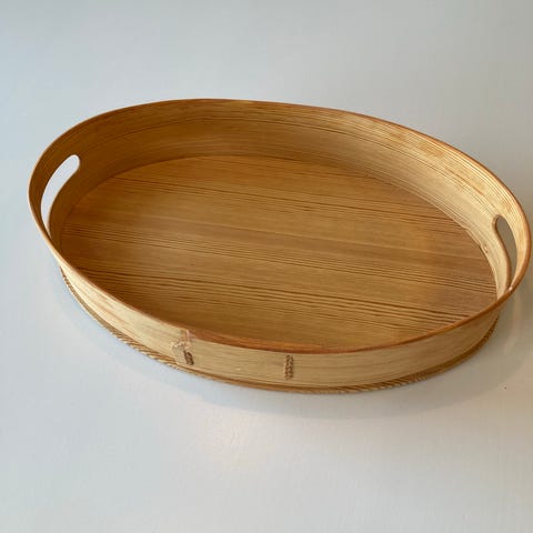 Flott fat i tre, som snurrer rundt. Fin utskåret kant rundt på undersiden av fatet