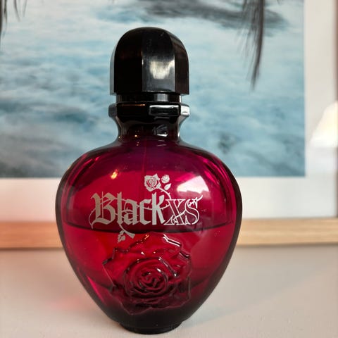 Mamma rydder opp, spraydeo ikke brukt, bare testet at den fungerer nå. Parfyme brukt masse av og følger med på kjøpet, 3-5 ml igjen av en 15 ml flaske anslagsvis.