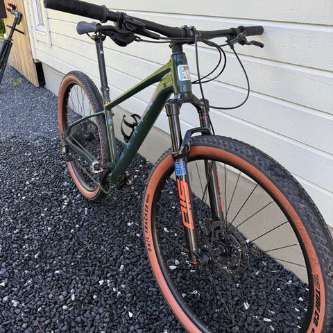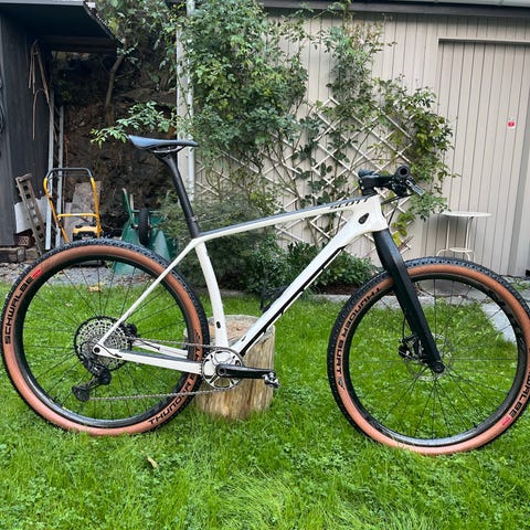 Selger en svært pent brukt Scott scale 925. Den er i str XL(ca 185-195). Har oppgradert til slx 36t drev for tyngere utveksling og dermed også nylig satt på nytt kjede. Sykkelen er ellers godt vedlikeholdt og andre slitedeler har masse levetid igjen. Flaskeholdere, pedaler og garminfeste følger ikke med.