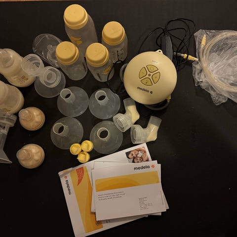 Medela swing elektrisk pumpe. Får også med noen Medela oppbevaringsposer, en medela brystmelkoppsamler og 2 flasker fra medela