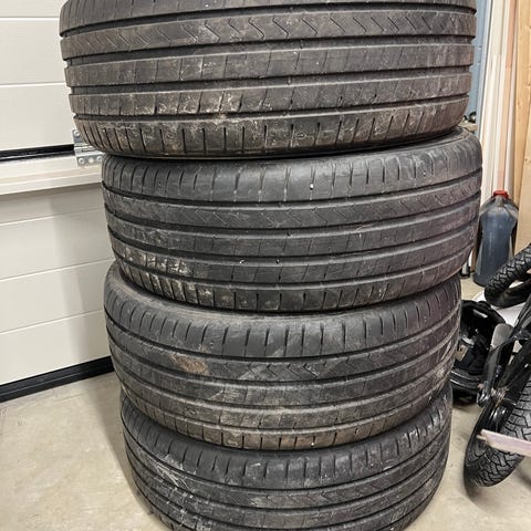 Selger 4-stk premium dekk. Disse dekkene sitter ekstremt godt på veien både på tørr og våtføre.
