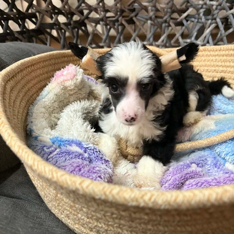 3 mnd gammel hannvalp selges.Trixsie selges med,Helsebok,2 vaksiner og 3 ganger med ormekur.Han vil også få med seg valpepakke som inneholder:bur,halsbånd,teppe,mat,matskål og leker.Trixsie blir det ikke noe pelsstell men må ha på seg ein jakke når det er kaldt.Han er vandt med å kjøre bil og vi er også mye på tur.Kloklipp går fint.Han er en snill og trygg valp som ønsker å komme til et varig og trygt hjem.Så leter dere etter en snill turvenn er det kanskje Trixsie dere leter etter🤗Ta kontakt på tlf 93067013 for en hyggelig hundeprat.