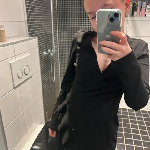 Nelly NLY One festkjole i størrelse S, mørk grå farge. Kjolen har lange ermer og er laget av et materiale med glitrende effekt. Egner seg til festlige anledninger. Det er puter i skulderpartiet, dyp utringning og splitt på kjolen.