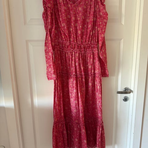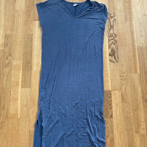 Saint Tropez Hverdagskjole i størrelse XS, blå farge. Kjolen har ermer med volangdetaljer og en enkel, rett passform. Laget av materiale som gir en jevn og behagelig overflate.