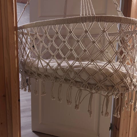 Koselig Classic™ vugge fra Leander som enten kan henges fra taket i den medfølgende kroken, eller i et stativ (selges separat). Dette muliggjør rolig og fri gynging i alle retninger. Bevegelsene er beroligende, samtidig som babyens sanser, balanse og motorikk stimuleres.