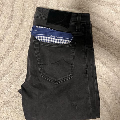 Selger helt nye Jacob Cohen bukse, ble aldri brukt kun stått i skapet. Buksen er i størrelse 33 men den er lagt opp. Jeg er 176 cm høy.