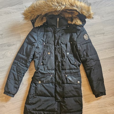 Boblejakke fra Zara woman, bittesmå fjær som går igjennom inni - se bilde. Har ikke noe å si for bruken. God og varm jakke. Klassisk snitt. (må bare renses litt).
