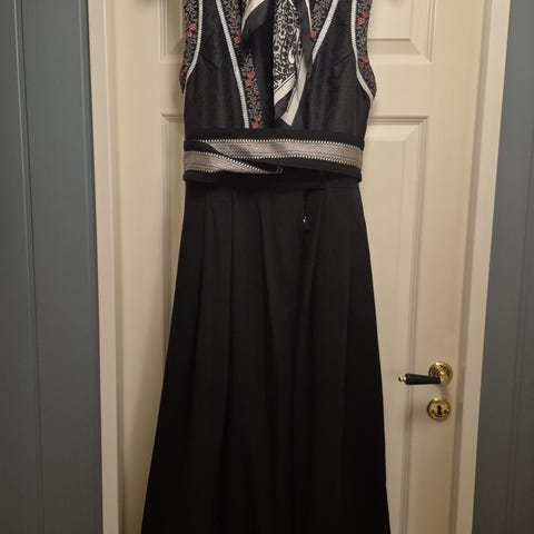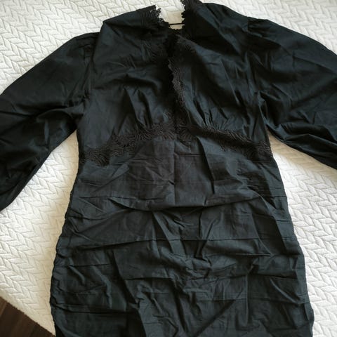 104cm fra arm hule til armhule(rundt). Pene sølvfargede metallknapper. Fin puff I armene. Laget i polyester.