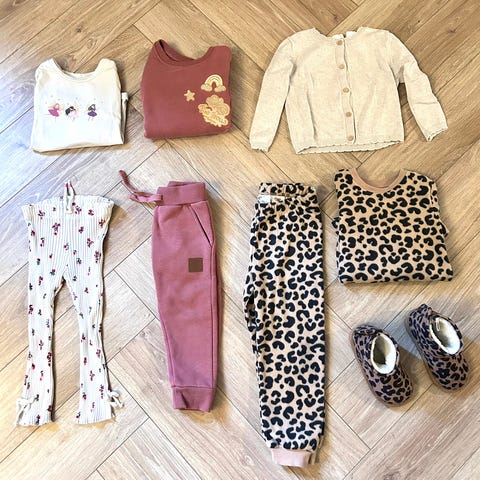Liten klespakke - leopardsett i fleece - str 98