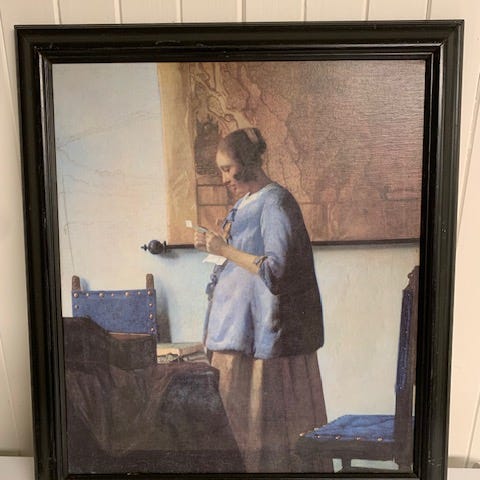 ST. SUNNIVA. Stor figur støpt i gråmalt gips. Sankt Sunniva er en norsk legendeskikkelse fra rundt 900-tallet. Firgurer er reprentert ved flere katedraler og kirker i norge, der i blant Nidarosdomen. H: 74 cm. Det er feste til veggheng bak.