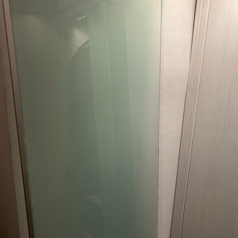 Herdet glassplate, laget for å dekke et bord laget av paller. Har noen små skraper av bruk, men de er kun synlige på nært hold.