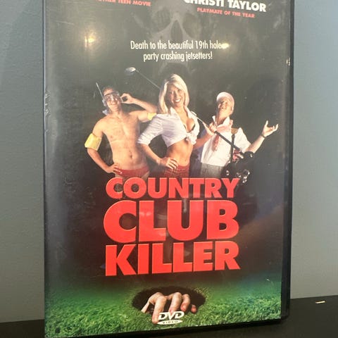 DVD med skrekk-komedien "Country Club Killer". En B-film om golfbaner, fester og mord! Merk: Dette er en tidligere leiefilm.