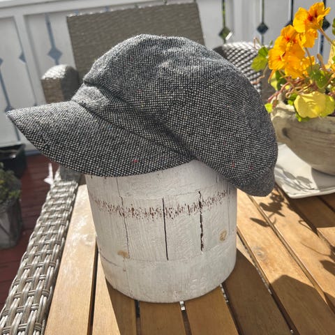 Vintage svart og hvit houndstooth Newsboy cap / Peaky Blinders hatt, størrelse 58. Kjøpt vintage i Spania for 15 år siden.