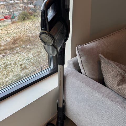 Toppmodell fra Miele av håndstøvsugere. Fungerer fantastisk på tepper, medium på harde gulv. Veggholder med lading medfølger, samt tre små munnstykker.