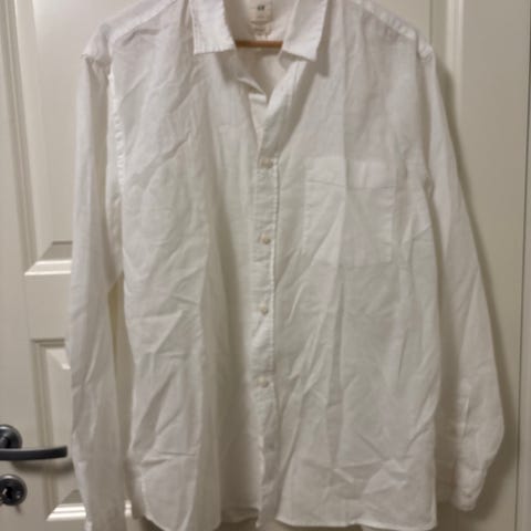 H&M skjorte i blå farge, størrelse L for herre. Laget av bomull med vanlig passform. Passer til hverdagsbruk og formelle anledninger.