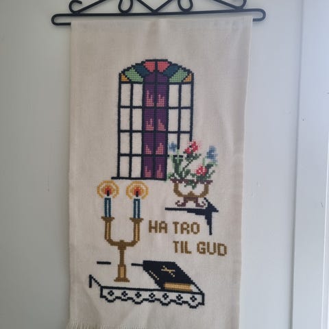 Nydelig åkle i fine klare farger.pent brukt.opphengstangen er 40cm i bredden.