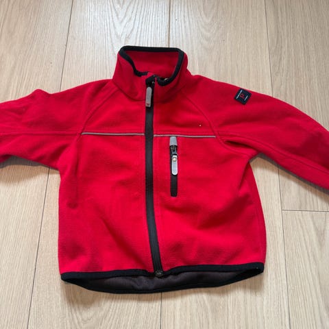 Fin og god vindfleece i god kvalitet. Pent brukt. Lyseblå/tåkeblå i størrelse 98, romslig i størrelse.