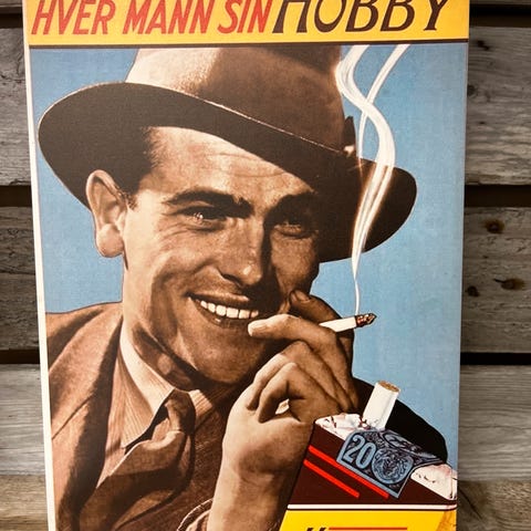 Skilt i Tynnmetall nyprodusert med bilde av: Sorte Mand , Ekstra mild 20X30 cm. Hentes eller sendes mot porto kr 65,- m/sporing eller med Fix ferdig. Ønsker du og kjøpe flere varer på en frakt, ta kontakt før du kjøper. For og se mine andre annonser, trykk på profilbilde og så annonser. NB! ER PÅ JOBB MAN - FRE MELLOM 06:30 - 16:00. NOEN GANGER MÅ JEG VENTE TIL ETTER JOBB MED OG SVARE. mvh Carsten