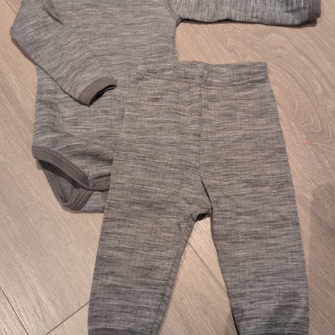 2 bodyer og en bukse i ull med bambusviskose på innsiden. 1 body i 100% merinoull.