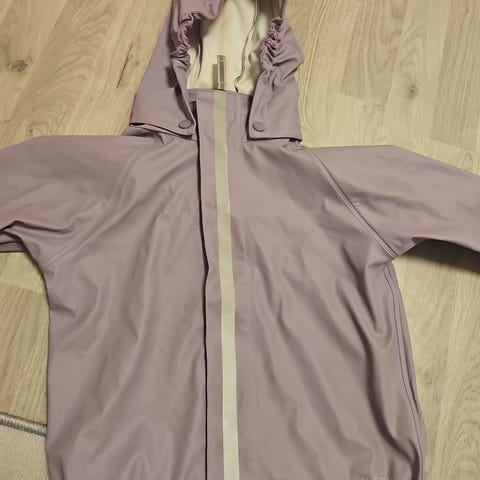 Reflex Kongsfjord foret regnsett i størrelse 110. Kun brukt 1 gang og fremstår som nytt. Vanntett, slitesterkt og med refleksdetaljer – perfekt for kjøligere og våte dager i barnehagen.