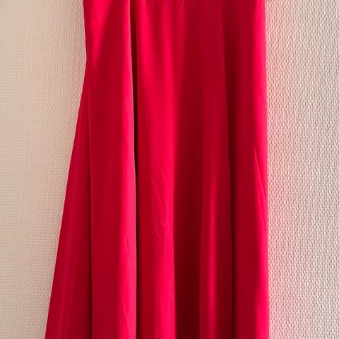 Selger en helt ny kjole i størrelse 38. Kjolen har en beige basefarge med rosa blomster som mønster. Materialet er lett. Designet inkluderer lange ermer med volanger og en belte for midjen. Selges da den ikke passer. Lengde ca.145 cm