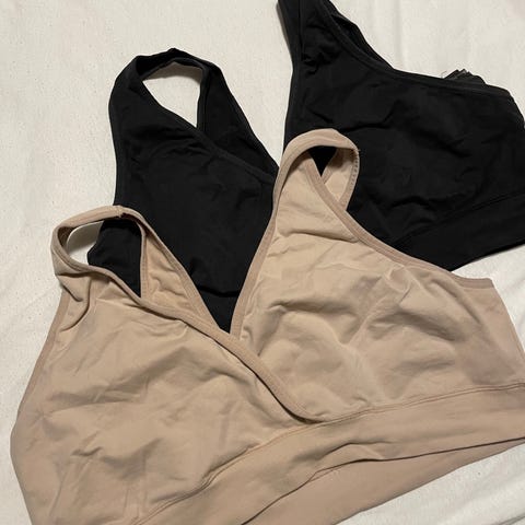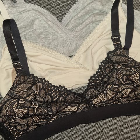 2 av de er helt like. Alle 3 med enkel «knapp» for enklere amming. To av de med padding og en uten. Den ute er hakket større enn de andre men brukt samtidig.